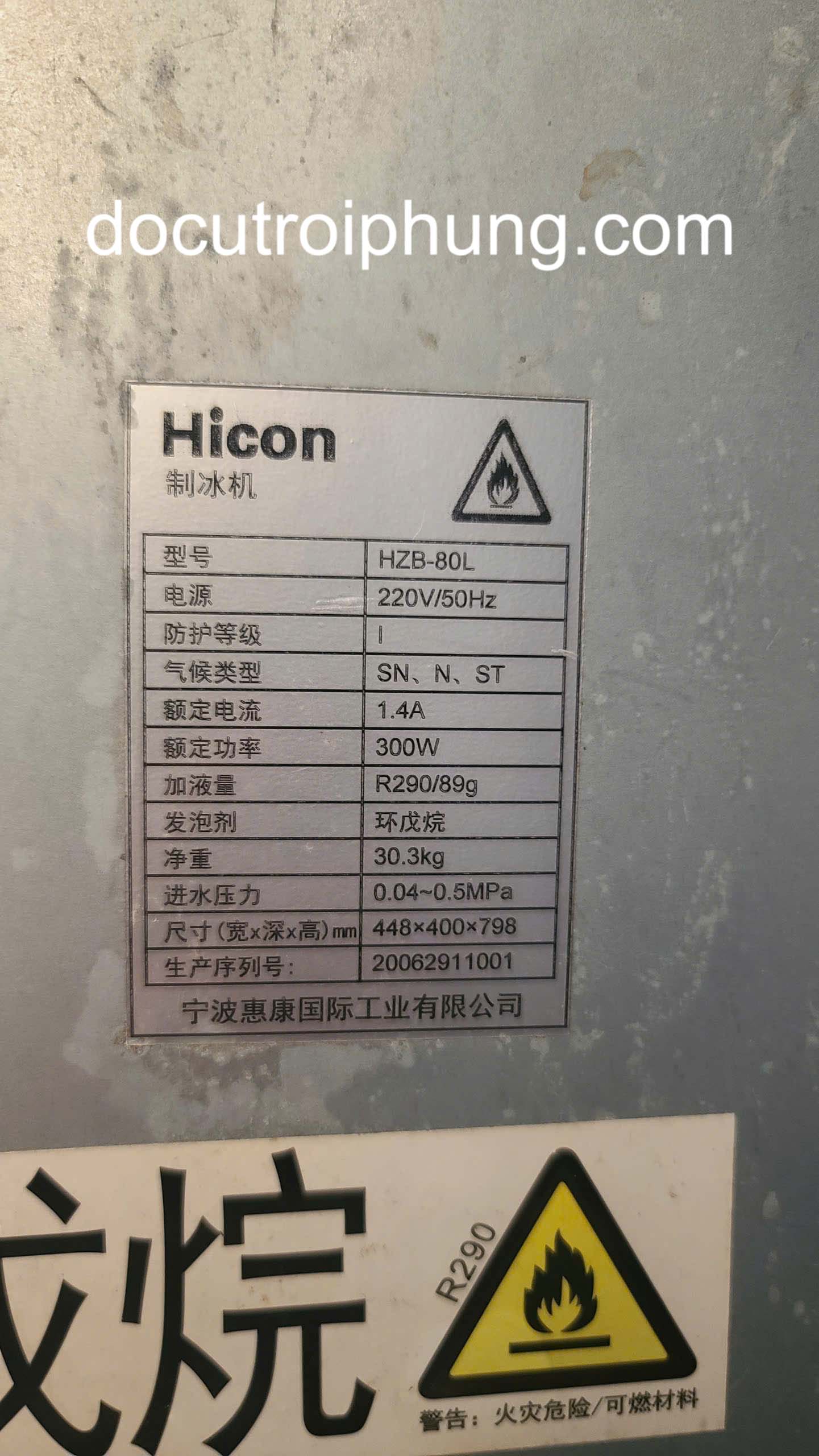 Thông số kỹ thuật của máy làm đá Hicon HZB-80L