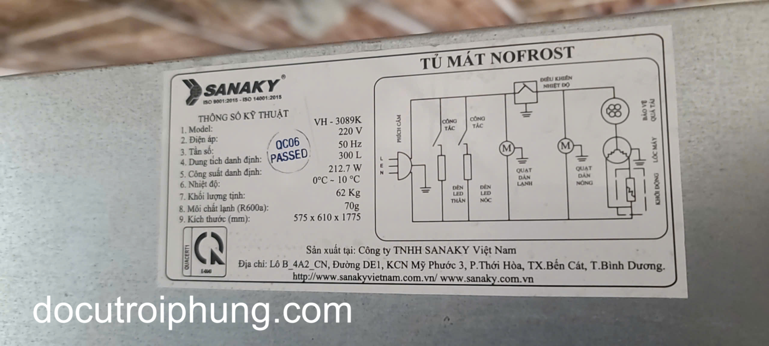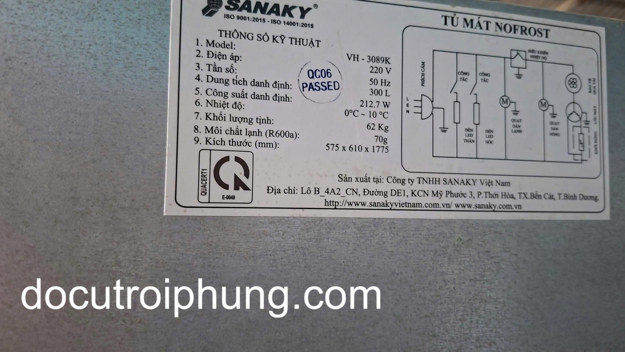 Thông số kỹ thuật Tủ mát Sanaky VH-3089K