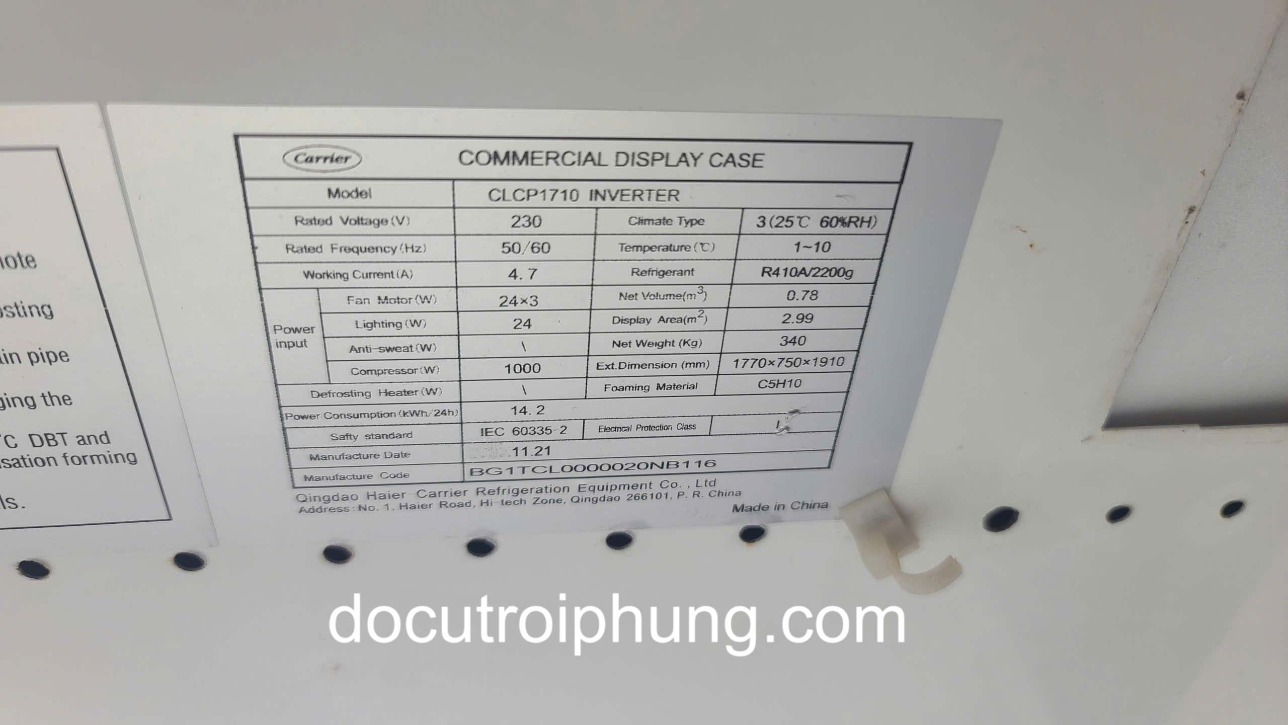 Thông số kỹ thuật của tủ mát siêu thị Carrier CLCP1710